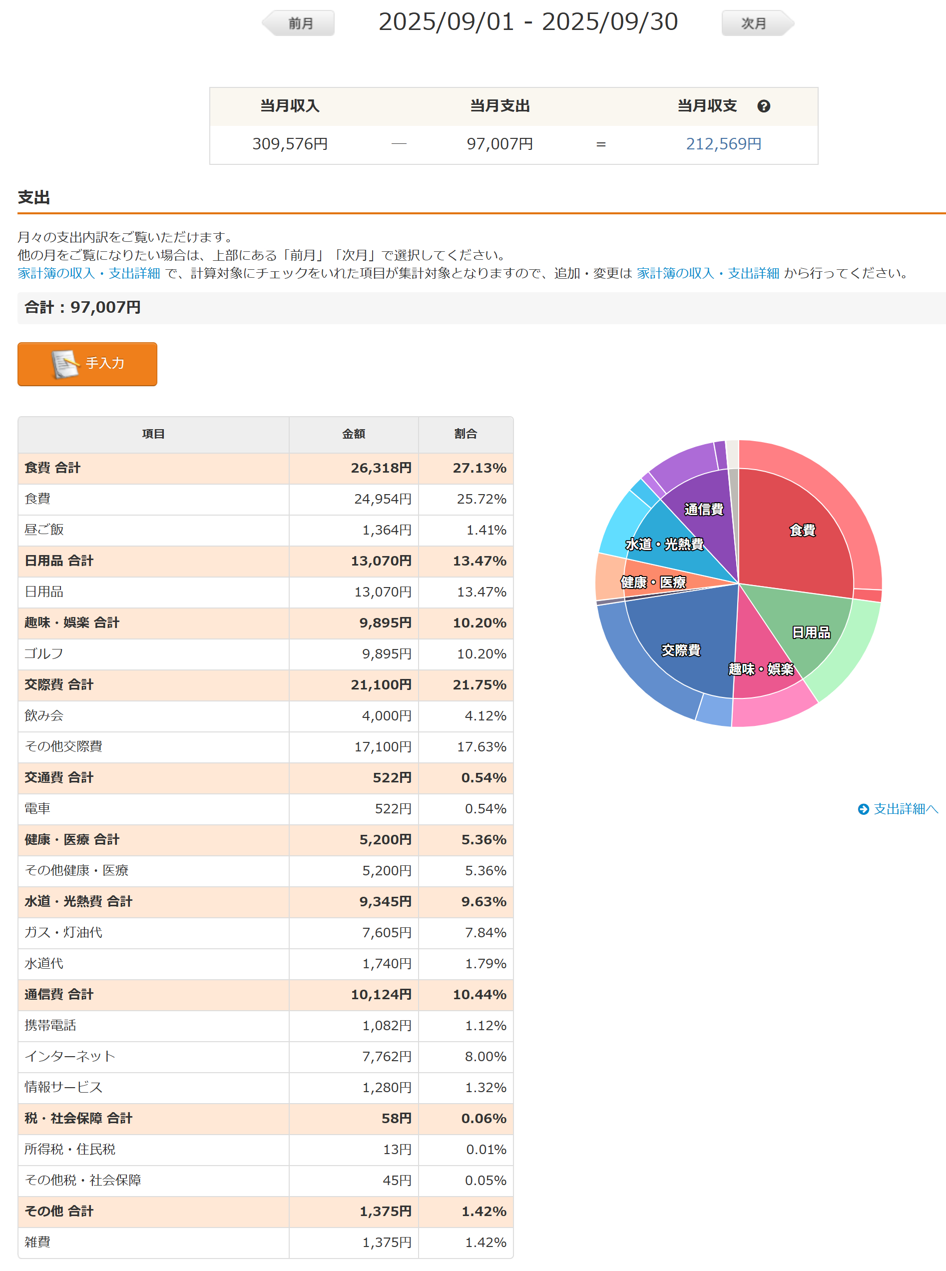 2025年9月家計簿内訳について
