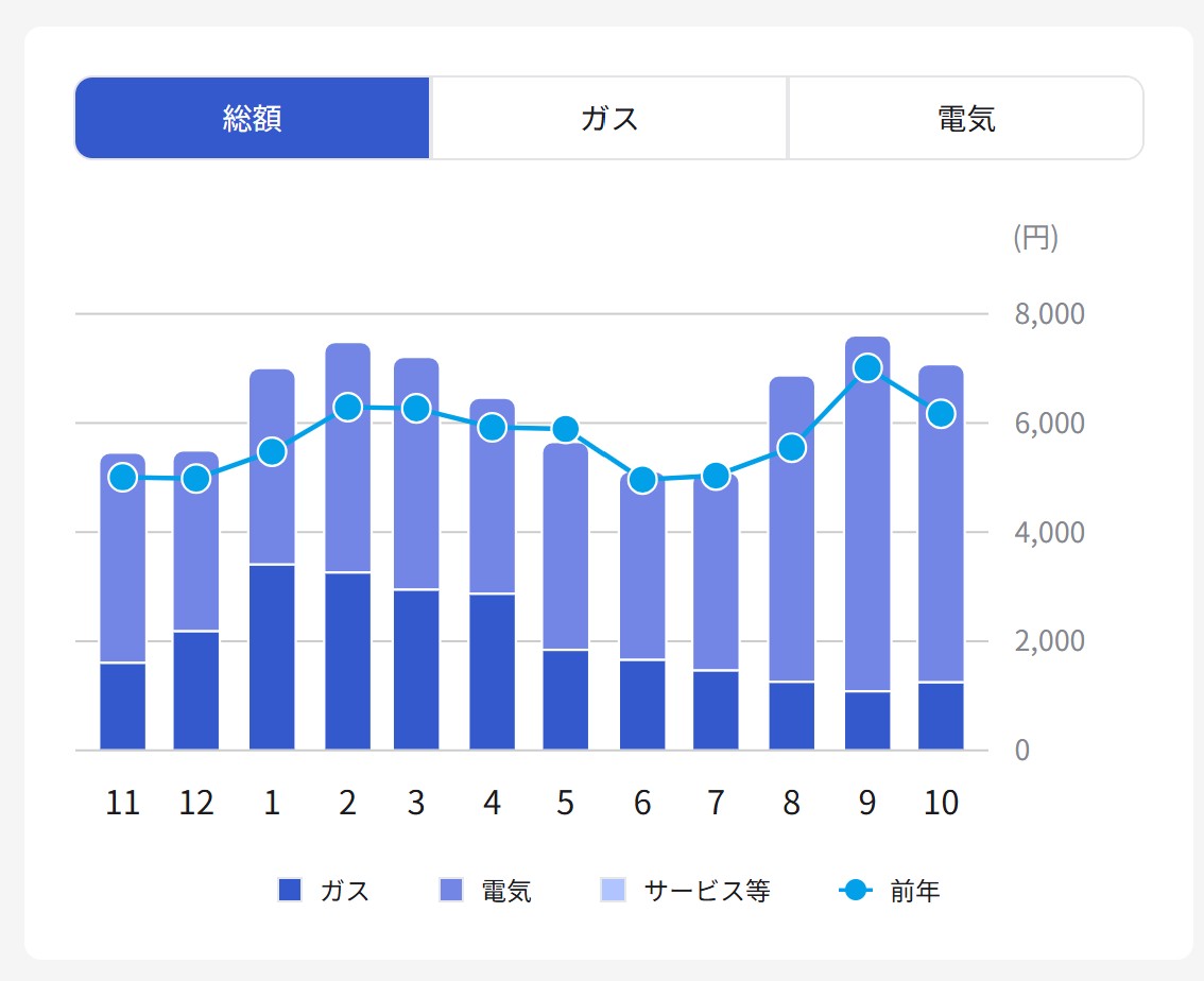 光熱費は電気ガス一括請求でこんな感じです↓
