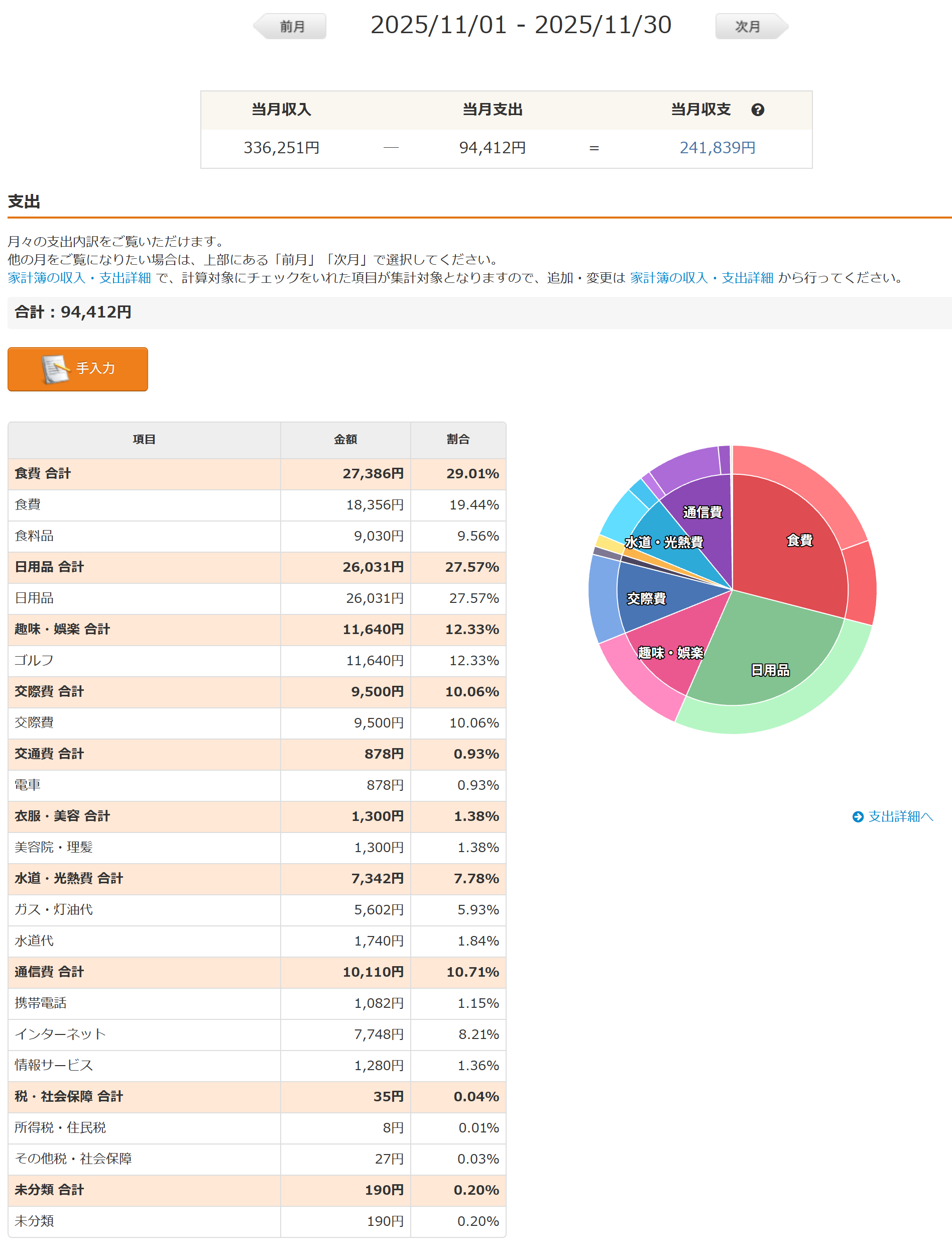 2025年11月家計簿内訳について