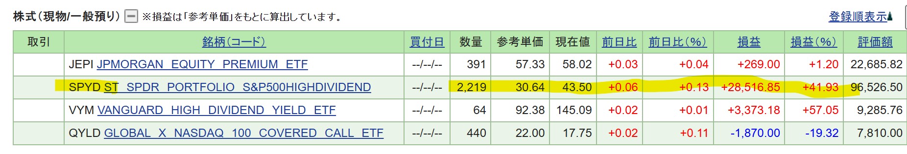 SPYDは現在2219株保有してます!!(もっと増やしたい!)
