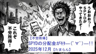 投資【不労所得】SPYDの分配金がキタ―(゚∀゚)―!!2025年12月【たまらん】 ども部員Xことノーモチベーションマンです。働くことってなんのためにするんでしょうね@2025冬 今回はSPYDの分配金報告記事です! 2025.12.29投資